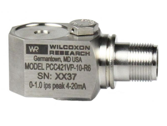 威爾康森4-20mA回路供電振動傳感器PCC421VP-10-R6型,側出口,105°C,4-20mA,每秒1.0英寸滿量程測量范圍,滿量程±5%容差,與峰值速度成正比。