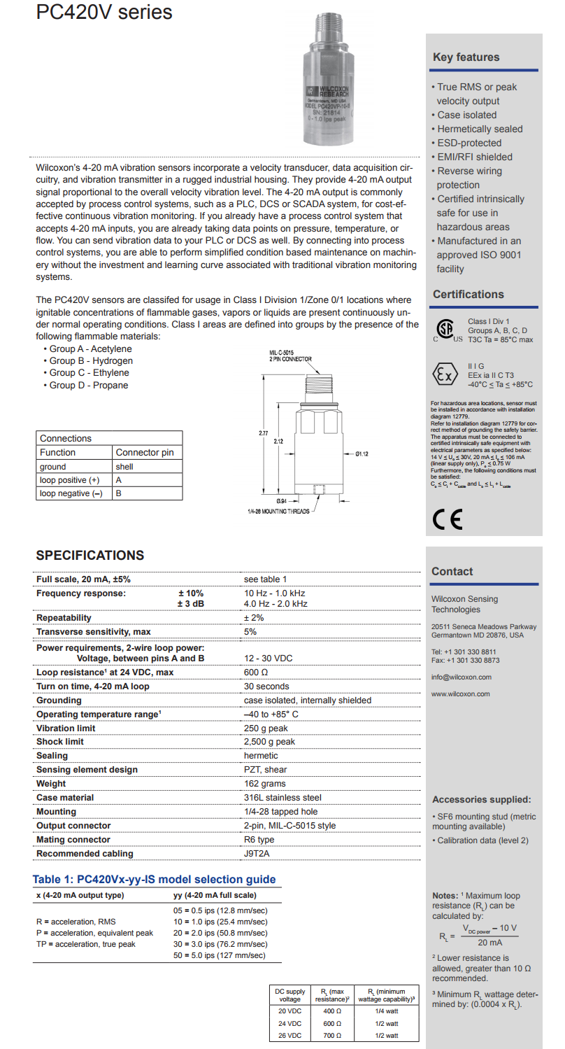 威爾康森回路供電振動(dòng)傳感器PC420VP-05-IS型