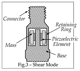 剪切設(shè)計(jì)使傳感元件承受剪切應(yīng)力。壓電傳感元件和振動(dòng)質(zhì)量通過(guò)一個(gè)固定環(huán)固定在一個(gè)直立的中心柱/底座上,如圖3所示。這種預(yù)載產(chǎn)生一種剛性結(jié)構(gòu),具有良好的頻率響應(yīng)和更高的機(jī)械完整性。由于敏感軸不與安裝表面一致,因此基本應(yīng)變和熱瞬態(tài)等不利環(huán)境條件不會(huì)像其他設(shè)計(jì)那樣產(chǎn)生錯(cuò)誤信號(hào)。