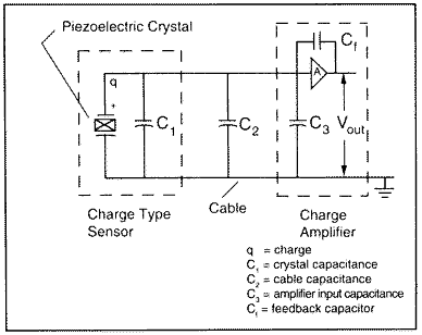 圖2和圖3顯示了典型的電荷放大器系統原理圖,包括:傳感器,低噪聲電纜和電荷放大器。