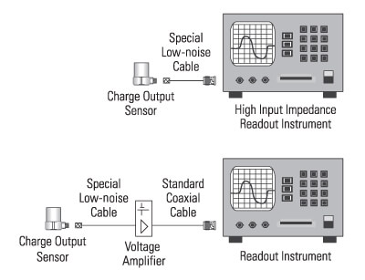 為了正確分析來自電荷輸出傳感器的信號,通常必須將高阻抗輸出轉換為低阻抗電壓信號。這可以通過讀出設備的輸入或通過串聯電壓和電荷放大器直接完成。每個案例將單***考慮。