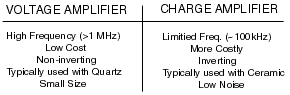 下面提供了集成電路電壓和電荷放大器的快速比較: