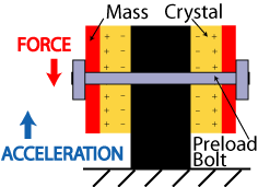 壓電效應是石英的固有特性和某些制造的陶瓷晶體??的誘導特性。壓電加速度計由諸如其傳感元件的晶體構(gòu)成。當晶體由于施加的力而經(jīng)受應力時,負離子和正離子將以與施加的力成正比的量積聚在晶體的相對表面上。對于加速度計,振動質(zhì)量與晶體耦合。當受到加速度的影響時,質(zhì)量將使力作用在晶體上,從而產(chǎn)生比例電輸出。這種因果關(guān)系由牛頓運動定律F = ma定義。