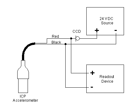 下圖顯示了如何將ICP加速度計正確連接到外部電源和讀出設備,如數字電壓表(DVM)或示波器: